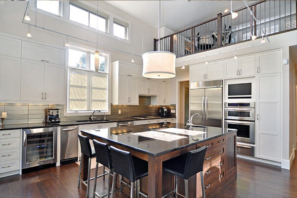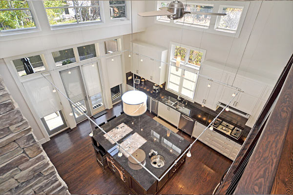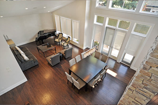 This unique bungalow was customized with an open floorplan and upper loft area. Open staircases, storage optimization and stylish design elements help make this home a one-of-a-kind family home.